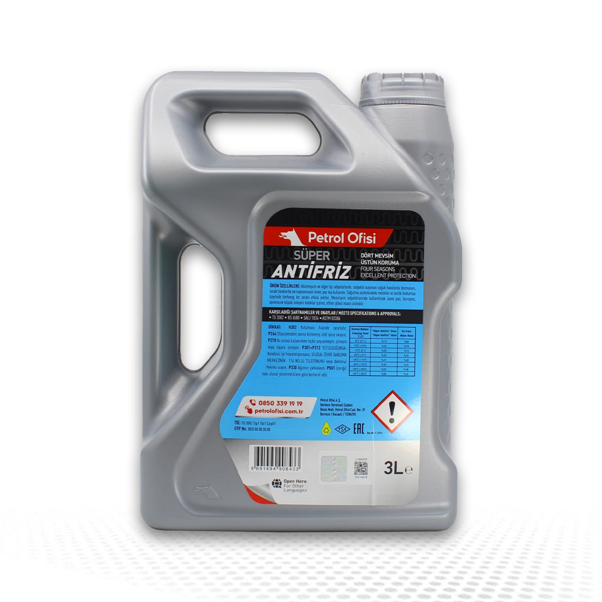 Petrol Ofisi Süper Antifriz, motorların radyatörlerinde kullanılmak üzere, pas, korozyon, aşınma ve köpük önleyici katıklar içeren etilen glikol esaslı üründür. Nitrit, amin ve fosfat içermez.